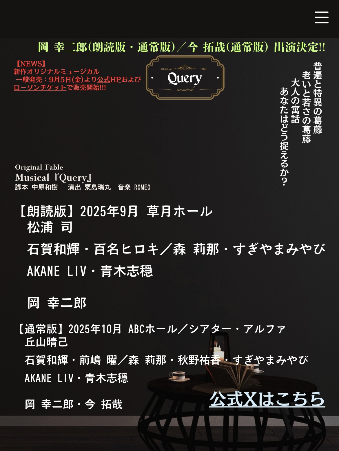 この度、令和7年2月13日に発表された文化庁による(劇場・音楽堂等における子供舞台芸術鑑賞体験支援事業)に、Musical『Query』の申請が決定いたしました。